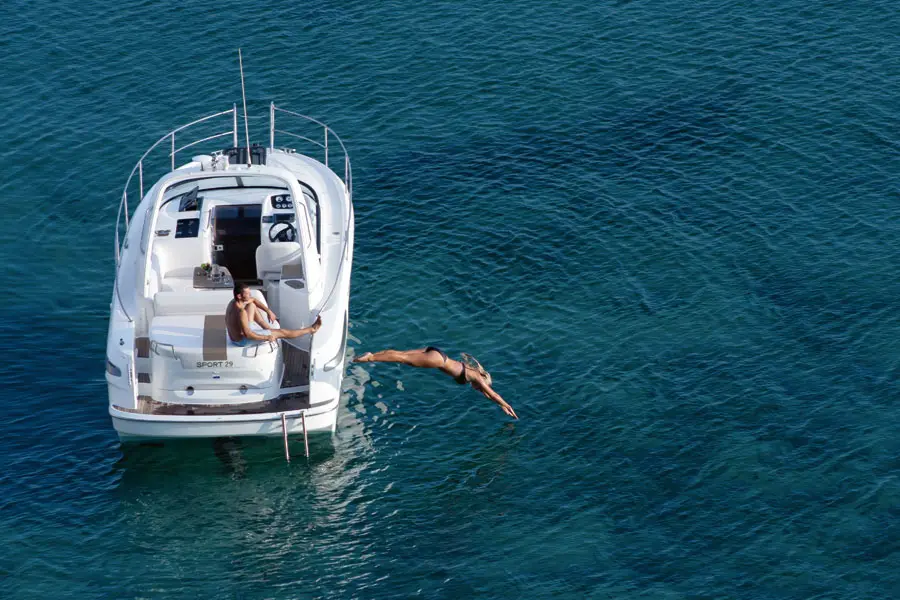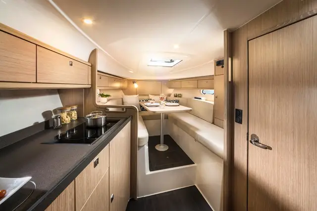 Le BAVARIA S29 mise sur un confort optimisé pour les plaisanciers recherchant un bateau de de 29 pieds. L’immense bain de soleil cache un espace de rangement très pratique pour y ranger toutes vos affaires et vos accessoires, tout en gardant un bel espace avec table et assises pour déjeuner tous ensemble. La plateforme de bain facilite la montée à bord et l’accès à l’eau, notamment pour les amateurs d’activités nautiques. Les matériaux durables et les finitions de qualité assurent un cadre de vie agréable et résistant aux conditions marines.