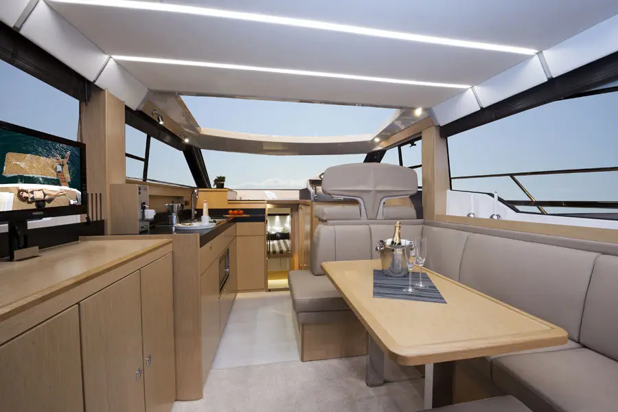 Le carré de la Virtess 420 est baigné de lumière naturelle, grâce aux grandes fenêtres panoramiques. Nous adorons cette luminosité et cette vue à 360°.