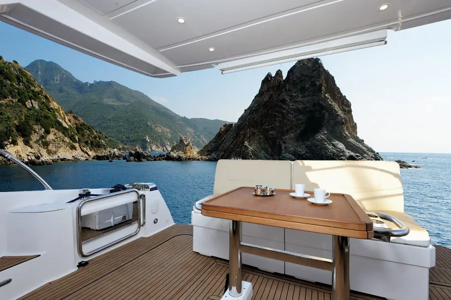 Cette Bavaria Virtess 420 est l’incarnation de la technologie de pointe et de solutions innovantes. Le grand toit ouvrant de la version COUPE s’ouvre par simple pression d’un bouton, transformant la VIRTESS 420 en un véritable cabriolet.