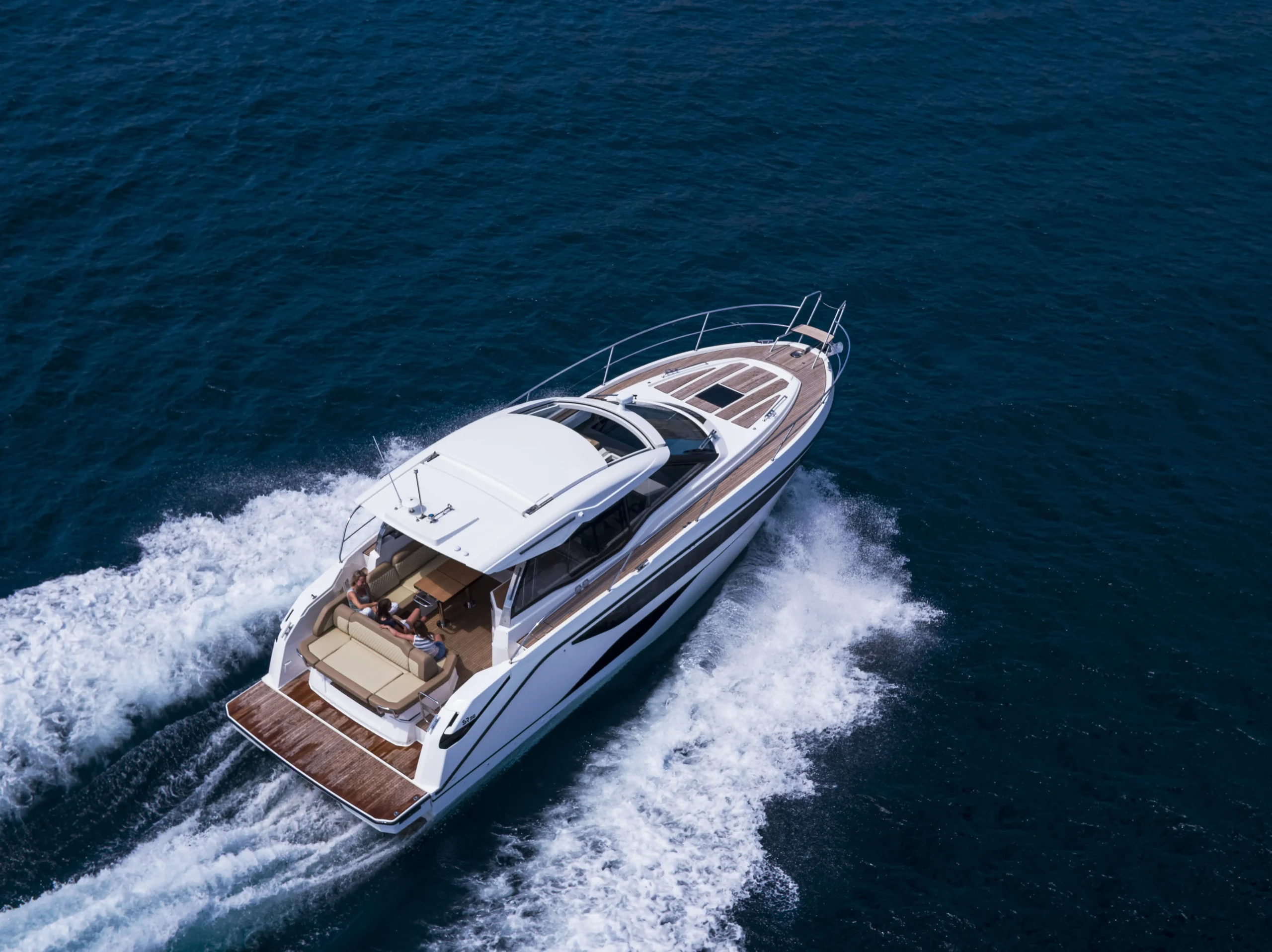 La VIRTESS 420 COUPE est bien sûr un véritable bateau moteur COUPE, mais vous pouvez quand même monter sur le toit pour vous détendre sous le soleil et profiter de votre musique (un des nombreux détails astucieux à bord des VIRTESS). Ou peut-être préférez-vous vous allonger au soleil sur le grand bain de soleil (2 x 2 m) à l’avant ? En version FLY, vous aurez tout l’espace pour piloter depuis le 2nd poste, recevoir vos convives autour de la table, prendre le soleil…