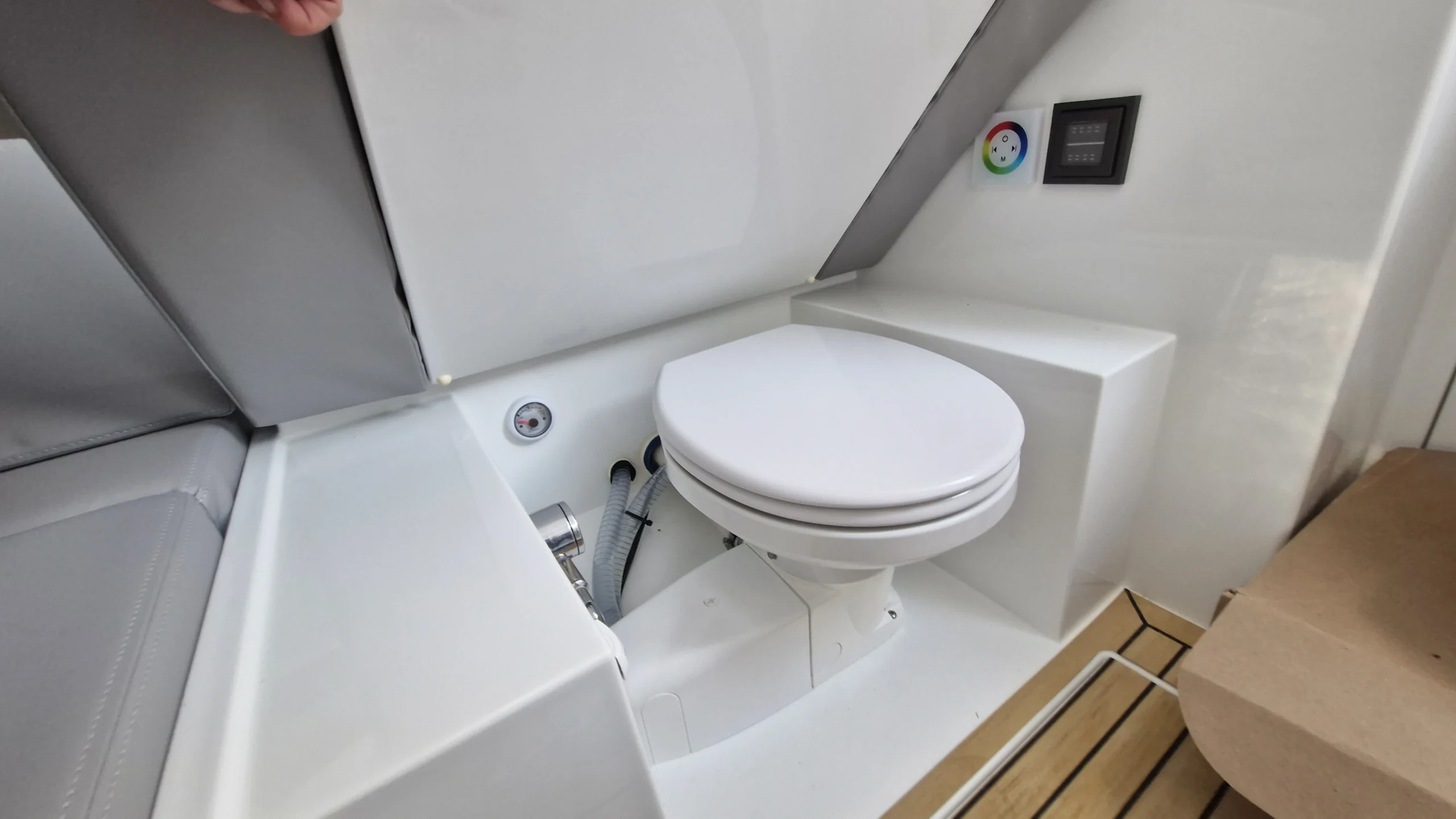 C’est une très belle surprise présentée au salon nautique de Düsseldorf 2025. L’évolution du D29 par rapport au D28, s’apparente plutôt à un petit D32. Sa cabine proposant un couchage double, un lavabo et un WC, offre une solution pratique pour un dayboat de 8 mètres, avec une belle hauteur sous barrot. Un réel avantage pour le confort des propriétaires lors de leur week-end en mer.