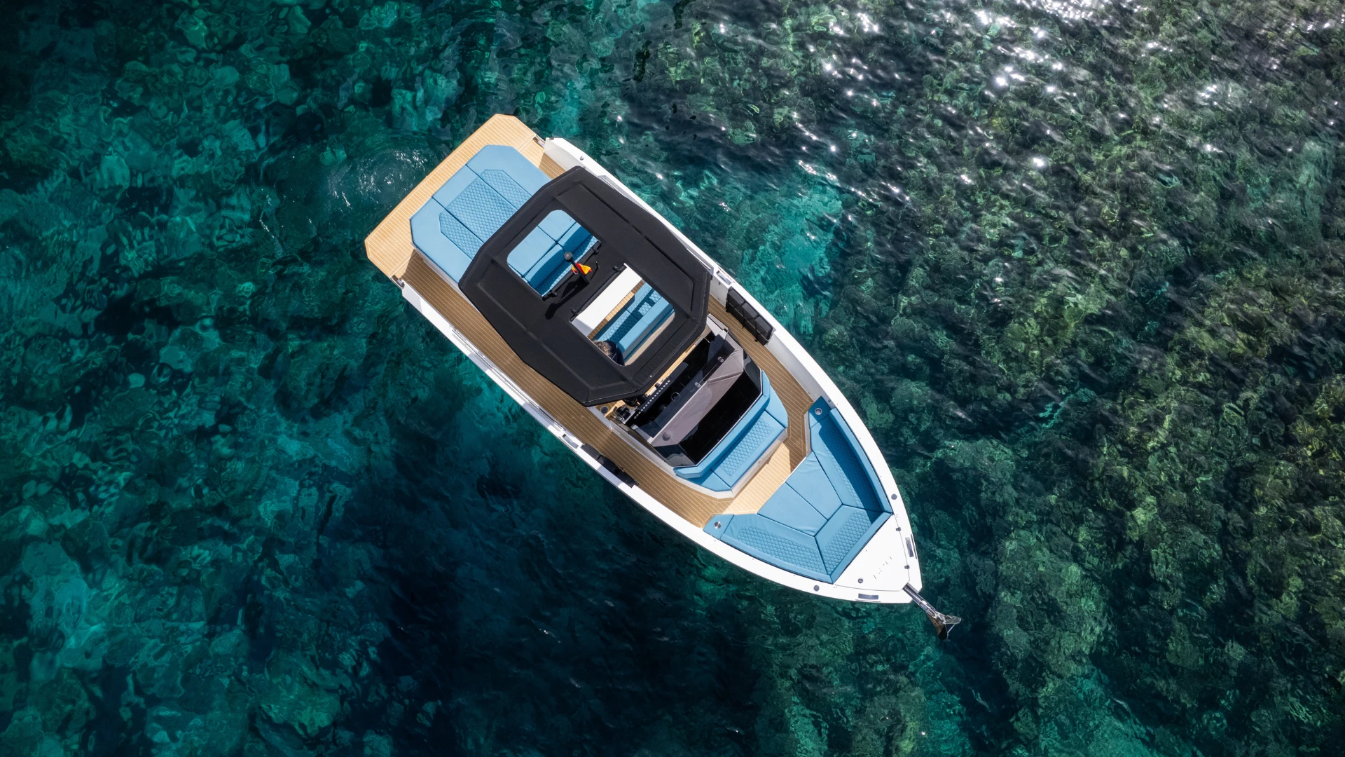 La coque en V du D29 avec steps garantit une navigation stable et fluide, parfaite pour la croisière rapide. La version standard propose un Soft Top, et en option, vous pouvez choisir le Hard Top! Une structure rigide qui vous abritera du soleil si besoin, avec une ouverture électrique en option. Le bain de soleil arrière recouvrant les moteurs hors-bord assure confort et style, l’innovation caractéristique des De Antonio.