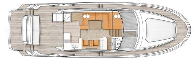 Le Greenline 45 est conçu pour profiter pleinement de la vie en extérieur. La cuisine ouverte sur le cockpit facilite les moments de convivialité et les repas en famille, tout en maintenant une connexion fluide entre les espaces intérieurs et extérieurs. La circulation de plain-pied entre le salon, la cuisine et le cockpit crée un sentiment d’espace et de confort. En version Fly, le large flybridge devient un espace de détente et de repas supplémentaire, idéal pour profiter de la vue et des moments de partage. Quant à la version Coupé, elle optimise l’espace dans le cockpit sans escalier, permettant davantage de places assises pour recevoir confortablement.