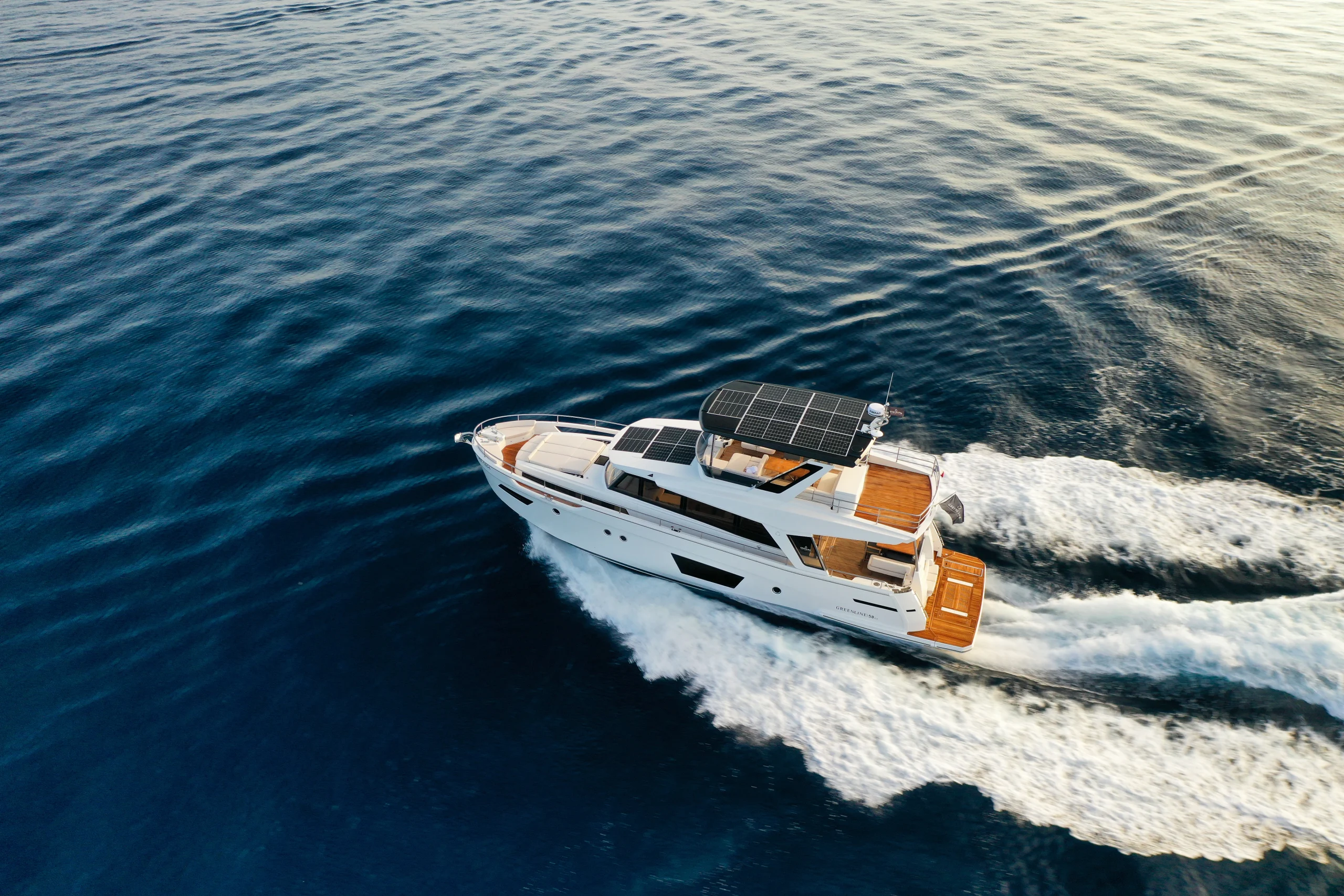 Avec le Greenline 58 Fly, SVP Yachts perpétue son engagement pour une navigation responsable et écologique. Outre la propulsion hybride en option et les panneaux solaires, le yacht est conçu avec une coque à infusion pour économiser les matériaux et limiter les émissions de CO₂ lors de la fabrication.
