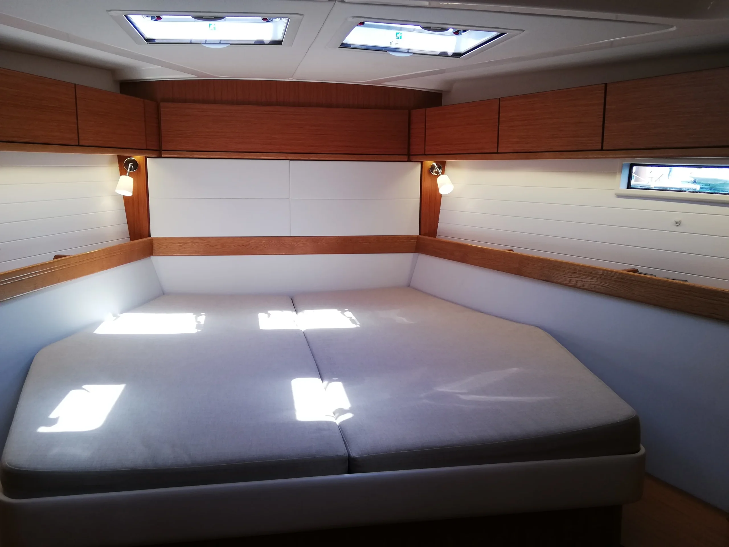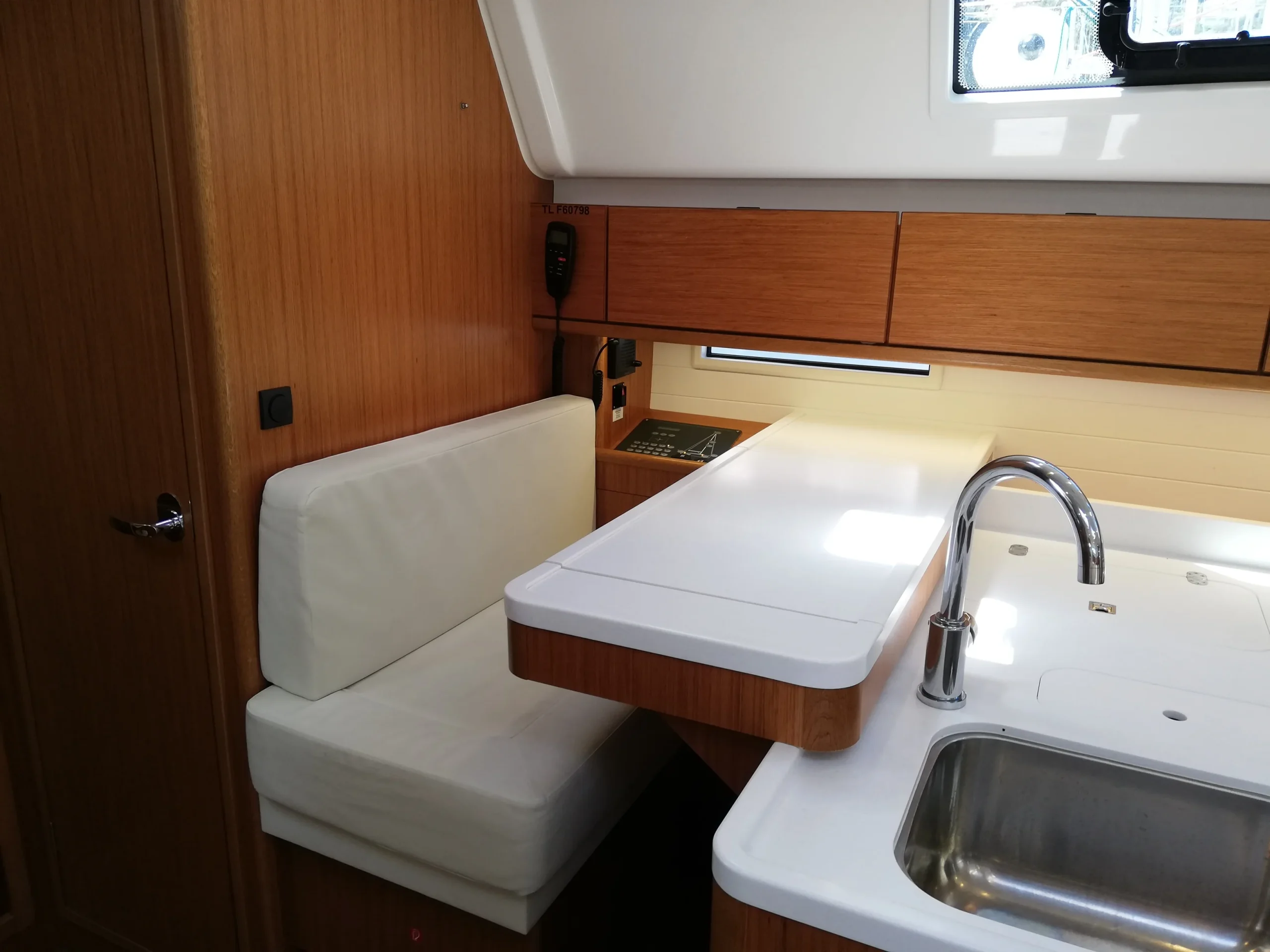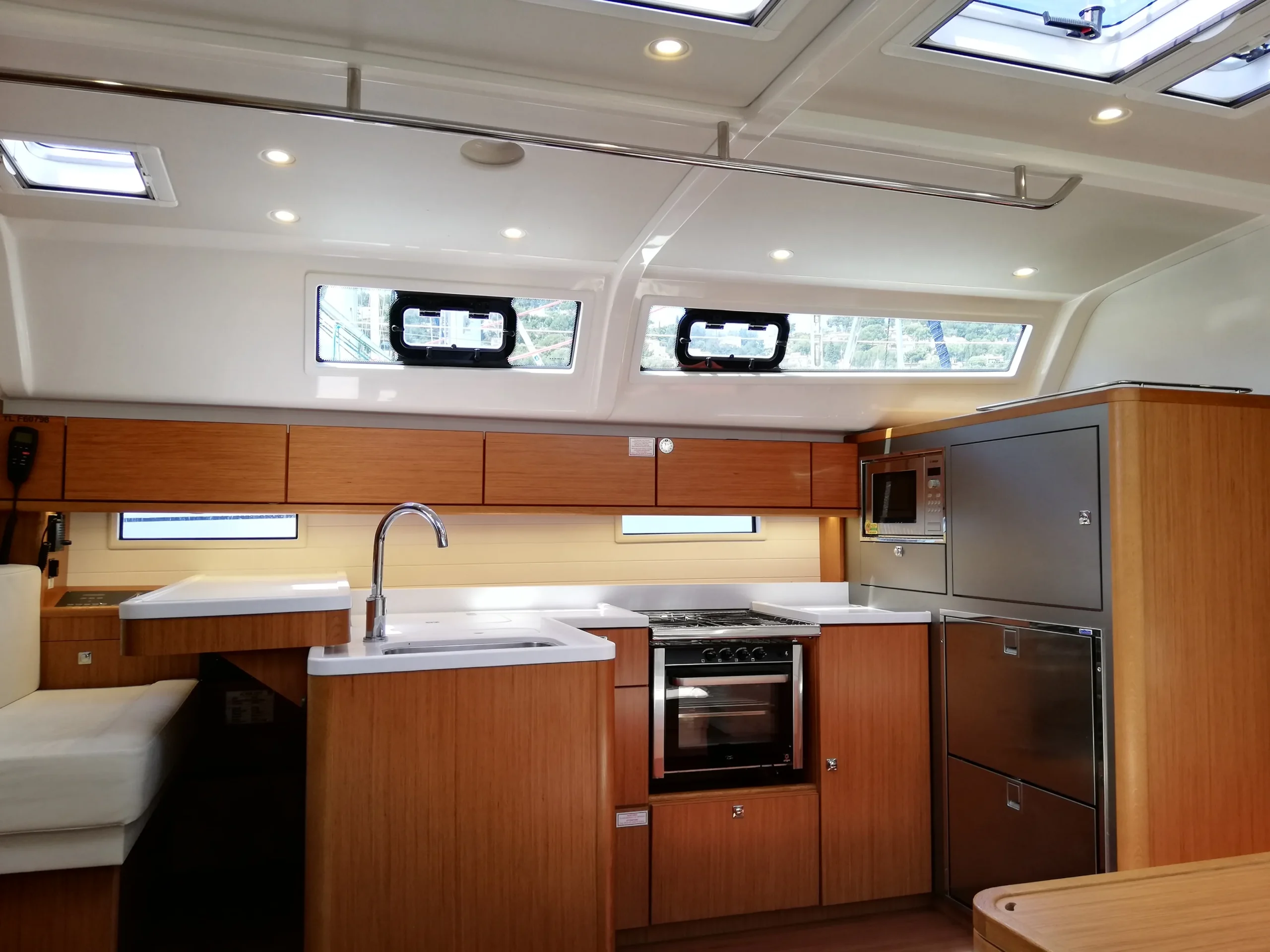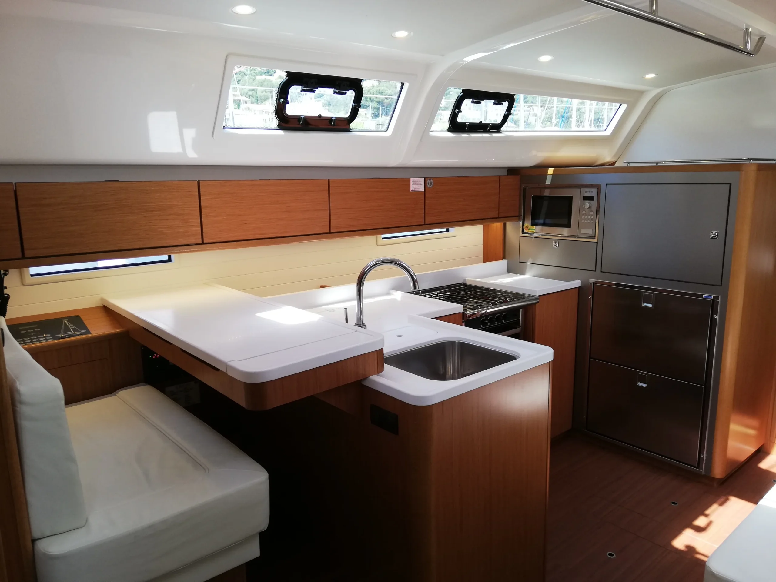 Chacun trouvera sa place grâce aux 3 cabines doubles, et la 4eme cabine avec lit superposés, idéale pour les enfants comme pour les grands. Les 3 salles d’eau sont un confort à bord lorsqu’on est nombreux. La grande cuisine équipée permet aux chefs de préparer de bons repas pour l’équipage, qui trouvera aisément sa place dans le carré.