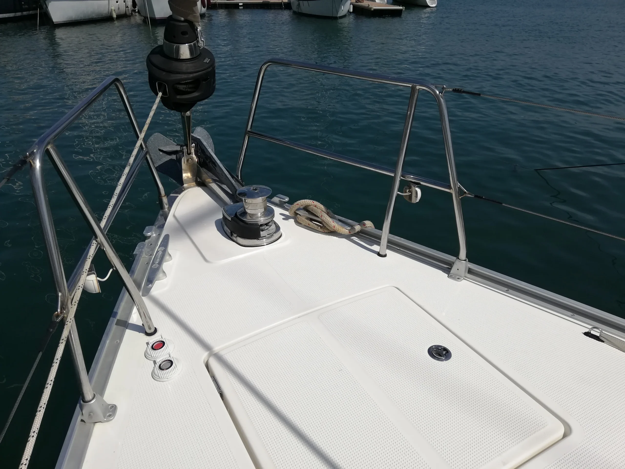La grand-voile sur enrouleur et son génois sur enrouleur facilitent les manœuvres du chef de bord, depuis l’arrière du cockpit, même si son équipage n’est pas composé de grands marins!