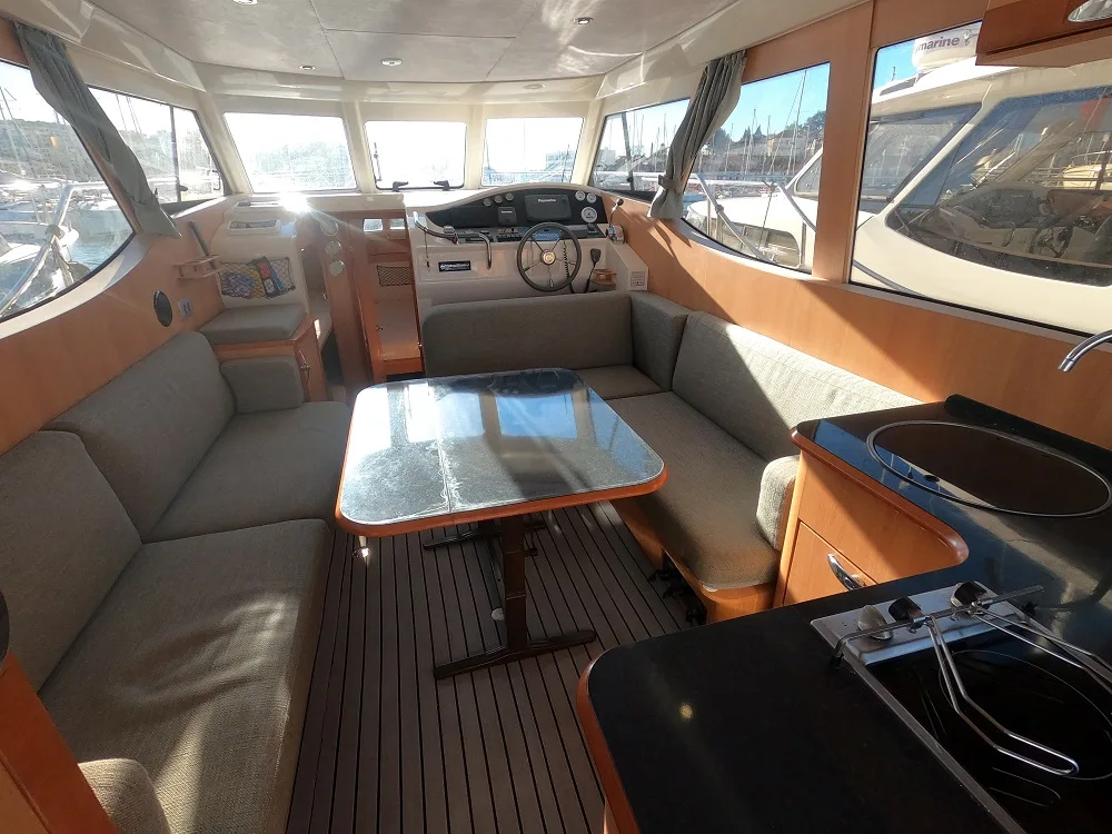 La navigation est très simple et sécuritaire grâce à tous les équipements électroniques, son propulseur d’étrave et son propulseur de poupe. Une mise en main complète vous sera proposée par notre équipe technique.