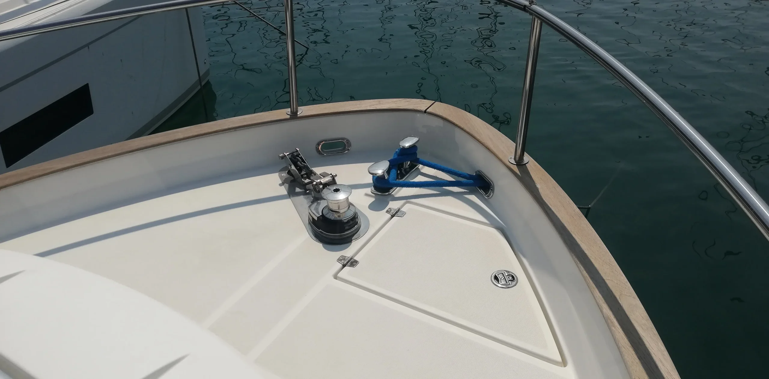 • – Guindeau électrique 700W Lofrans avec télécommande, 50m de chaine de diamètre 8mm galvanisée, ancre 20KG, protection inox coque à l’avant, bloqueur de chaîne