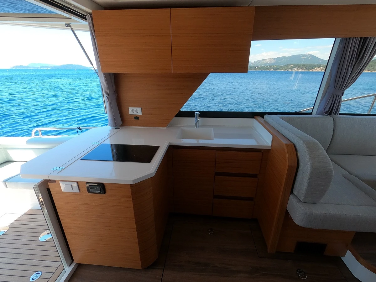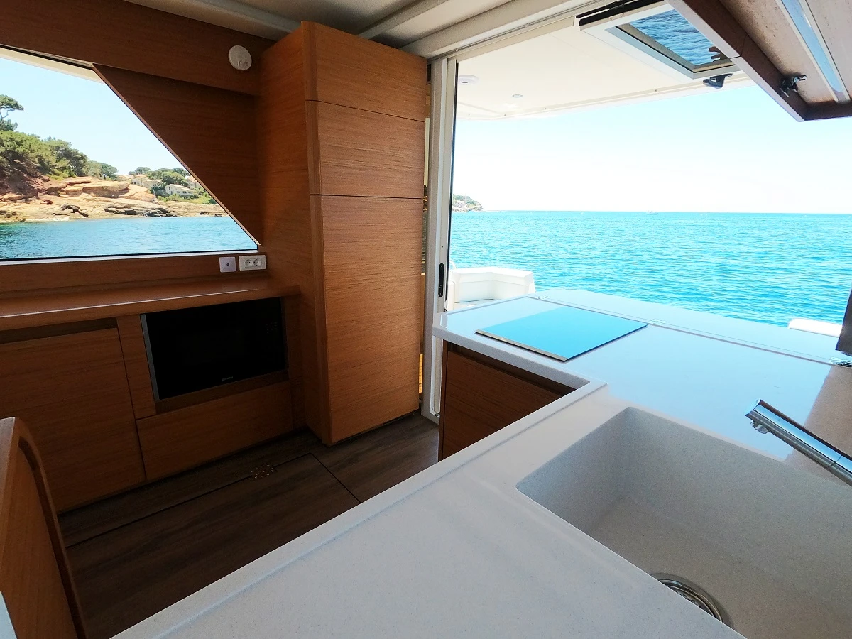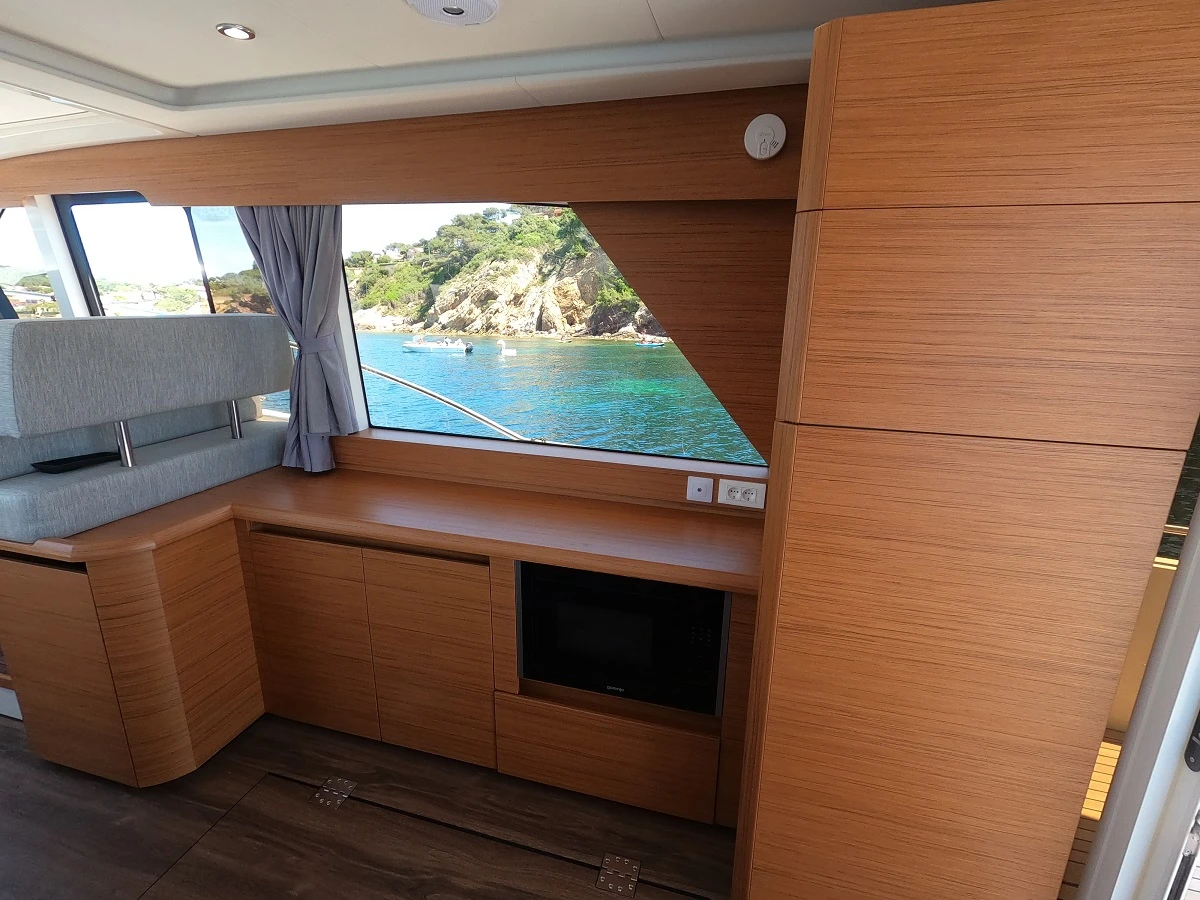 Doté d’une motorisation performante à faible consommation et de panneaux solaires alimentant ses batteries, le Greeline 39 est un bon marcheur sur lequel vous pouvez compter pour de longues heures d’autonomie énergétique. De plus, c’est un bateau facile de navigation. Sa maniabilité, associée à des équipements de navigation tels que les flaps, les propulseurs d’étrave et de poupe, permet aux plaisanciers de profiter d’une expérience de navigation fiable et plaisante. Cette autonomie accrue vous permet de partir plus loin, sans vous soucier des arrêts fréquents pour ravitaillement. Que vous envisagiez une croisière prolongée ou des sorties plus courtes, le Greenline 39 vous offre une grande liberté pour explorer de nouvelles destinations.